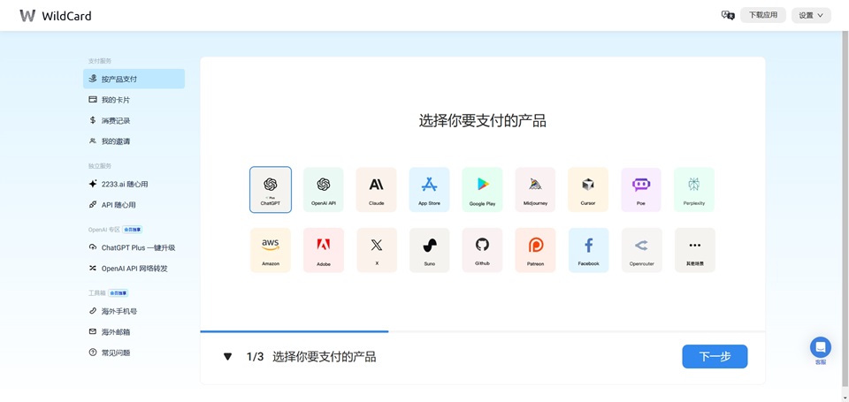 值得一提的是,如果你需要海外手机号注册服务,或者网络风险较大被拒付,Wildcard还贴心的提供3次手机号接码服务及ChatGPT家宽网络升级环境,以及真实的美国账单地址提供,直接复制即可使用,全程非常方便。